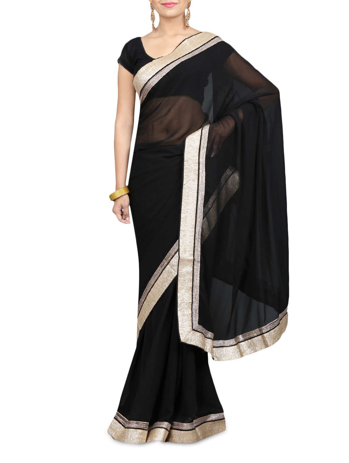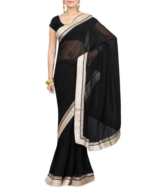 #1 solid black chiffon saree & similar products...