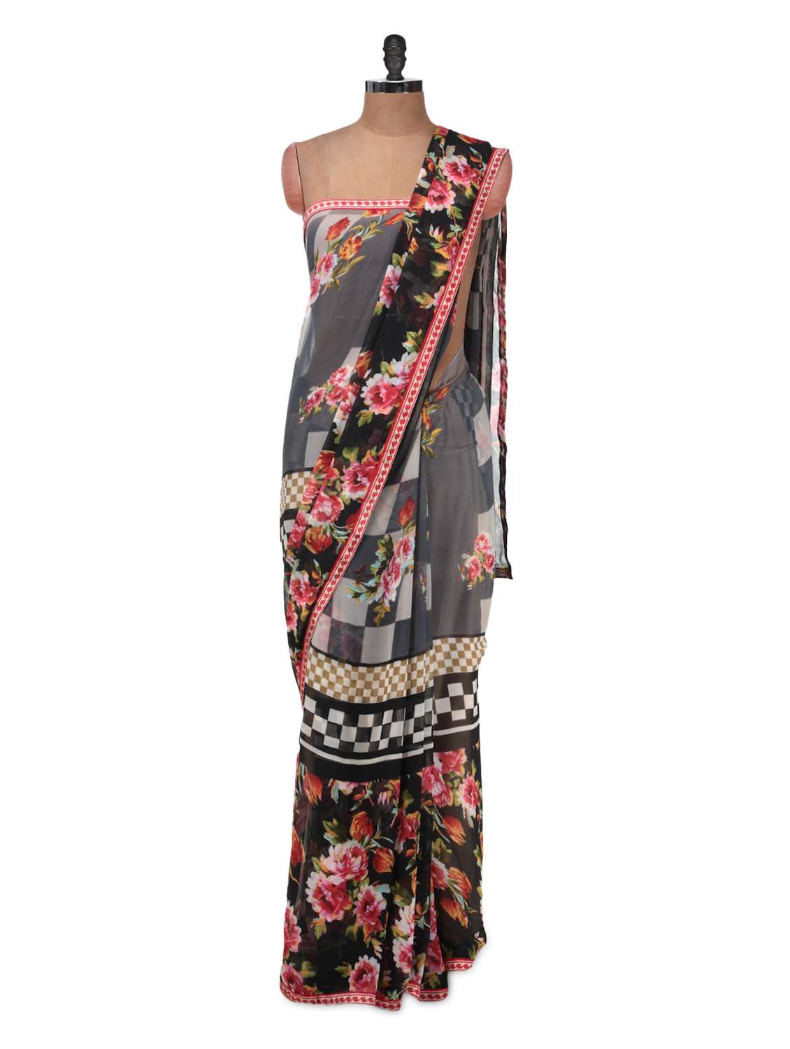 #1 black and grey floral georgette saree with blouse & इसी तरह के उत्पाद...