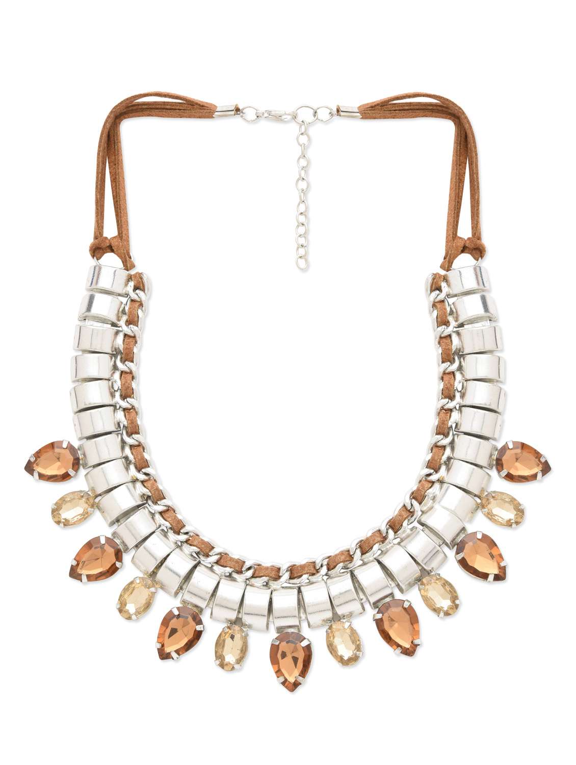 #2 silver beaded metallic necklace with stone embellishment & similar products...