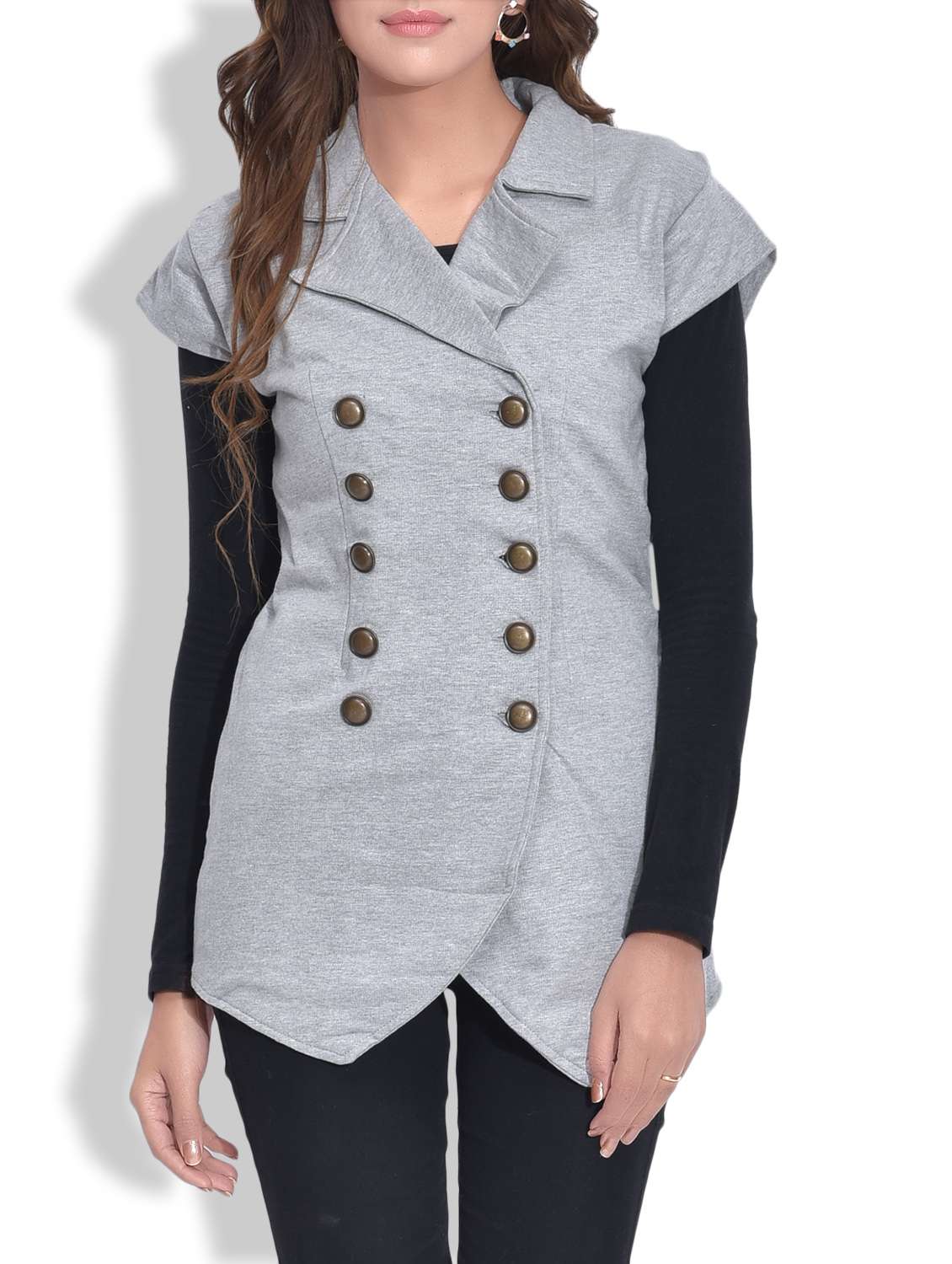 #2 grey buttoned cap sleeved wool cotton jacket & similar products...