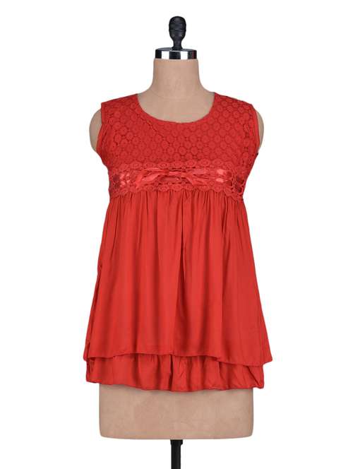 #1 red frilled rayon tunic with satin ribbon & similar products...