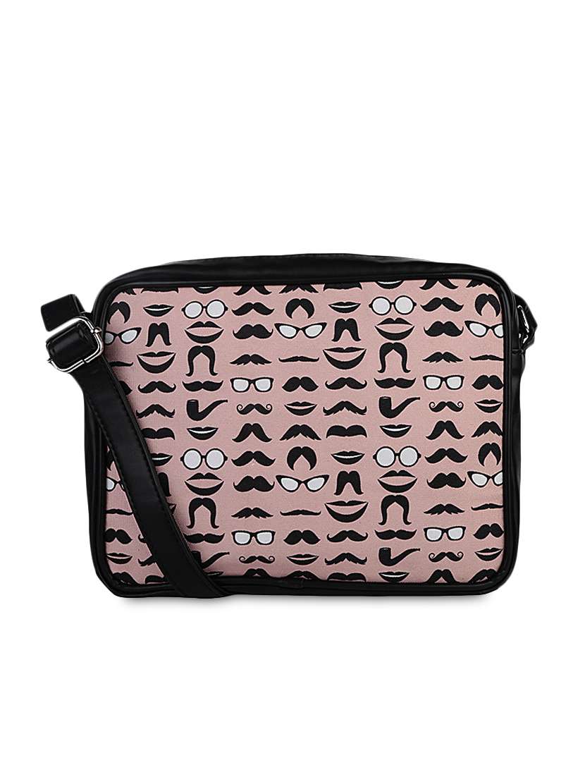 #3 black moustache faux leather and canvas unisex sling bag & similar products...