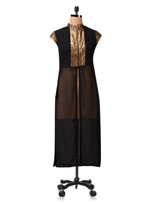 #1 sequined black georgette kurta & similar products...