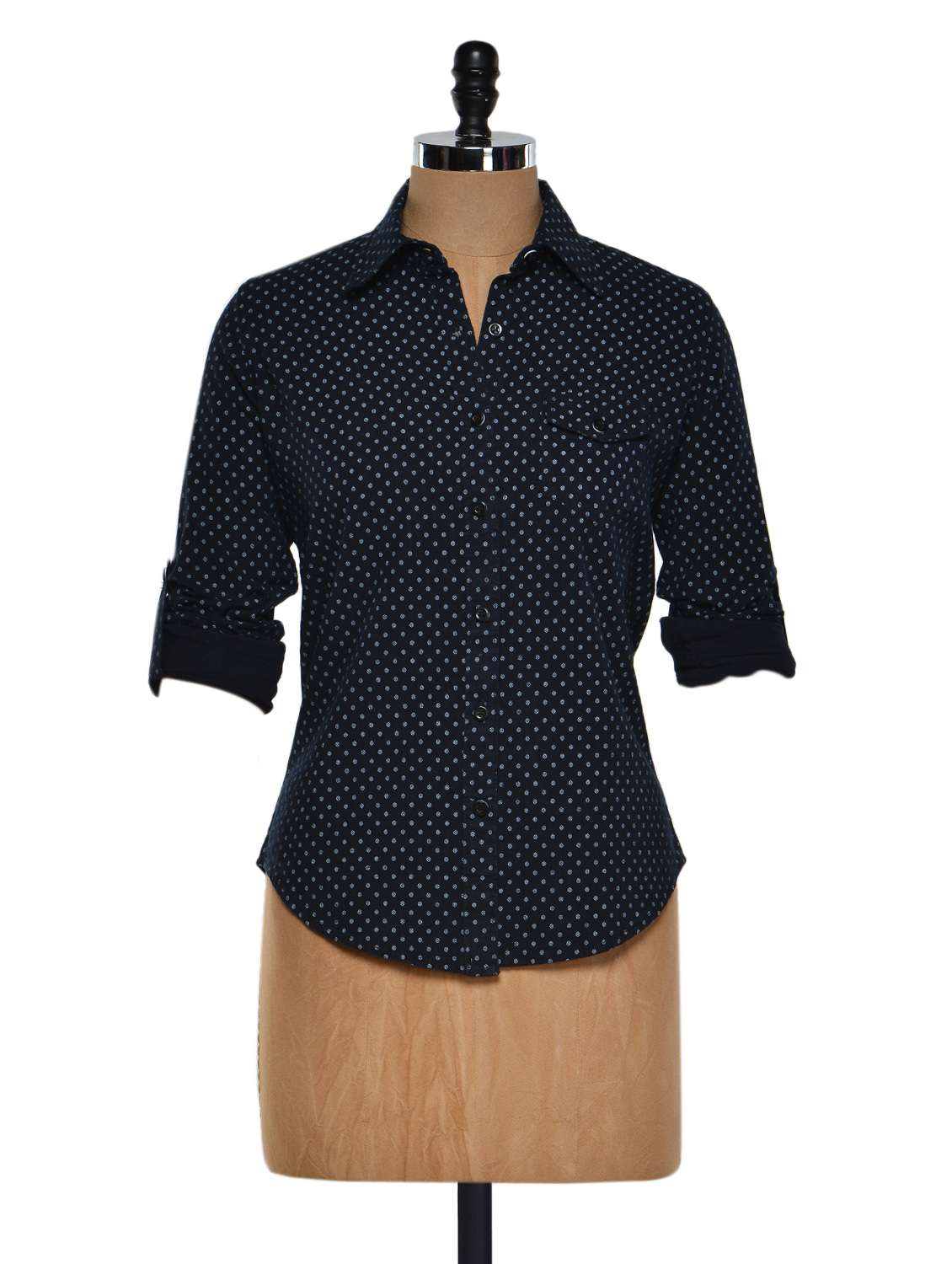 #2 black printed roll-up sleeved shirt & similar products...