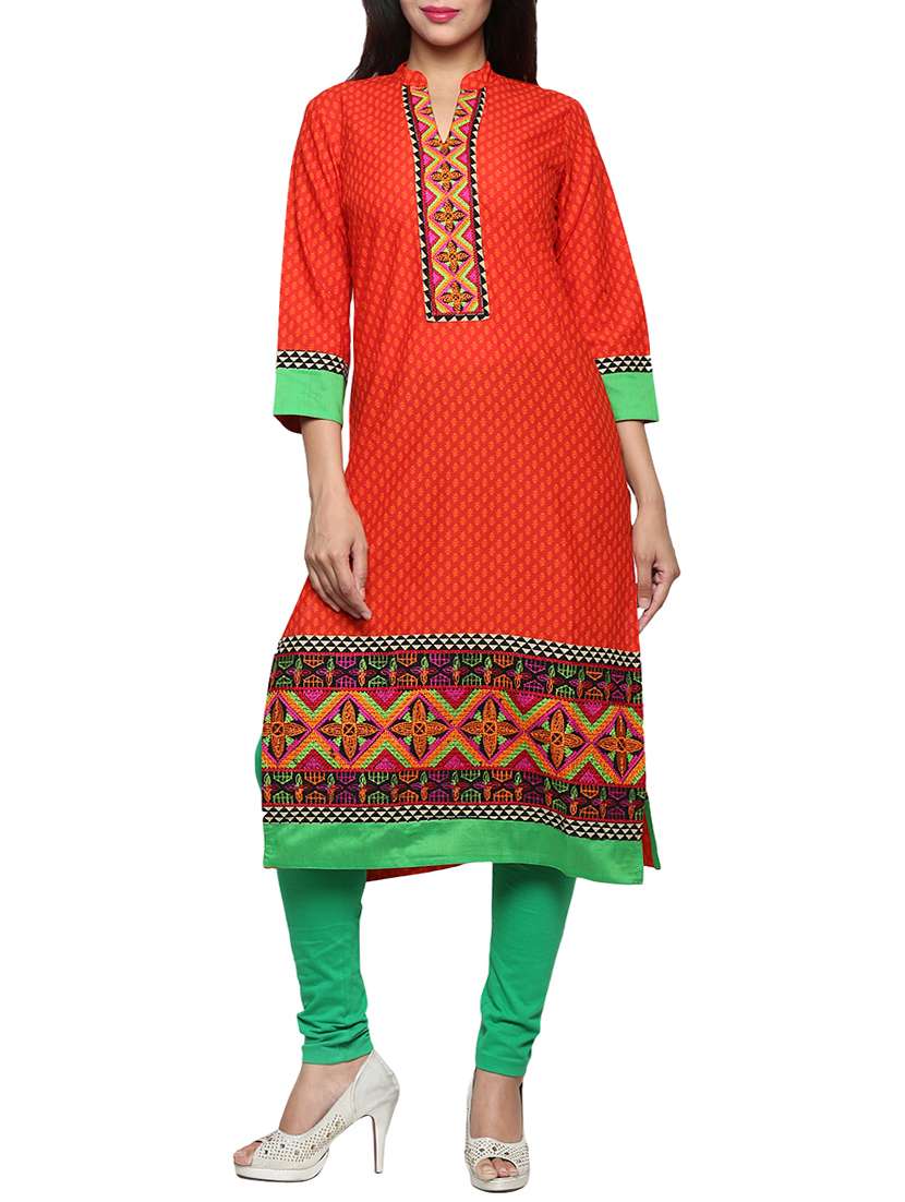 #2 embroidered & printed mandarin collar cotton kurta & similar products...