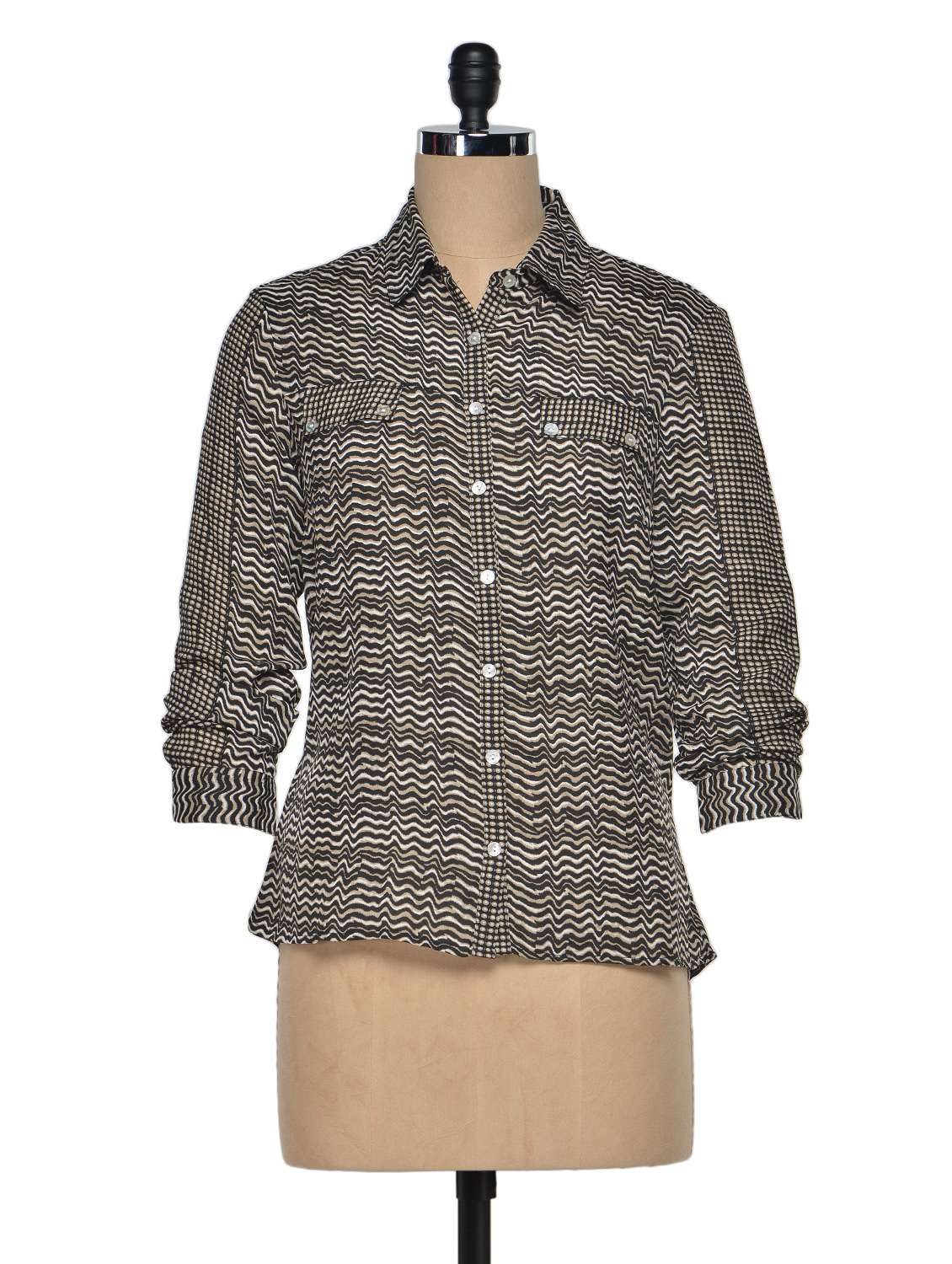 #2 Black-Beige Chevron Printed Shirt & similar products...