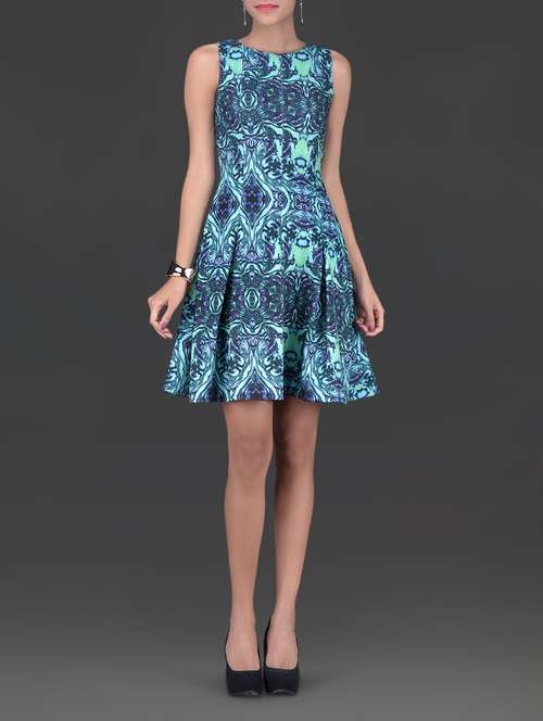 #1 sea green and purple printed and pleated dress & similar products...
