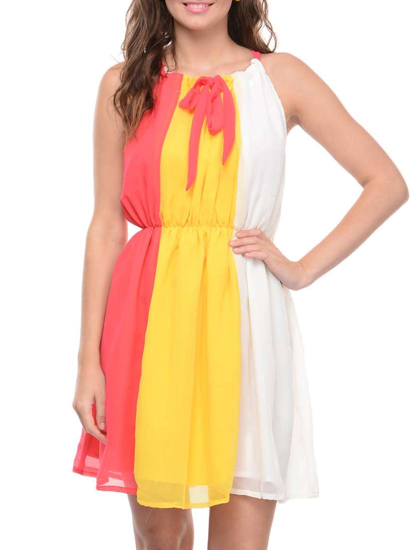 #1 colour block tie up neck georgette dress & similar products...