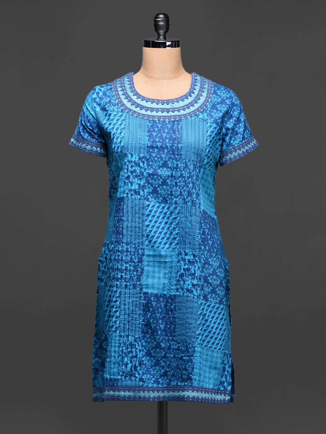 #1 multipattern printed blue round neck kurta & similar products...