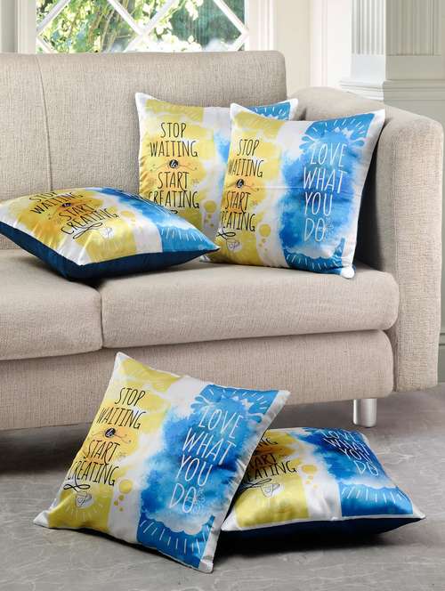 #1 blue and yellow polysilk printed cushion cover (set of 5) & इसी तरह के उत्पाद...