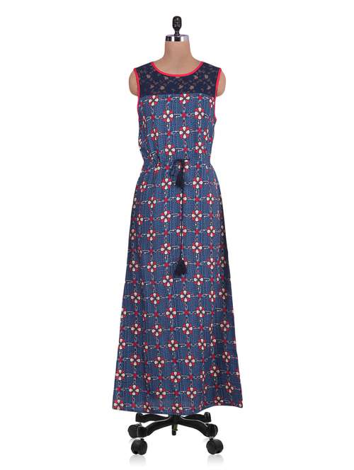 #1 Navy blue printed rayon sleeveless maxi dress & इसी तरह के उत्पाद...