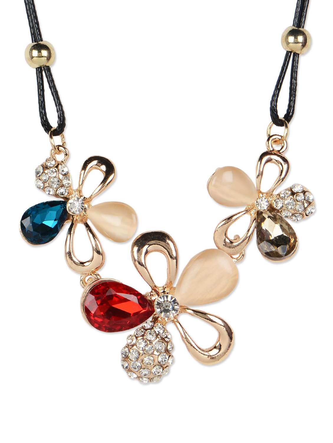 #2 trio crystal and stone studded flower choker necklace & similar products...