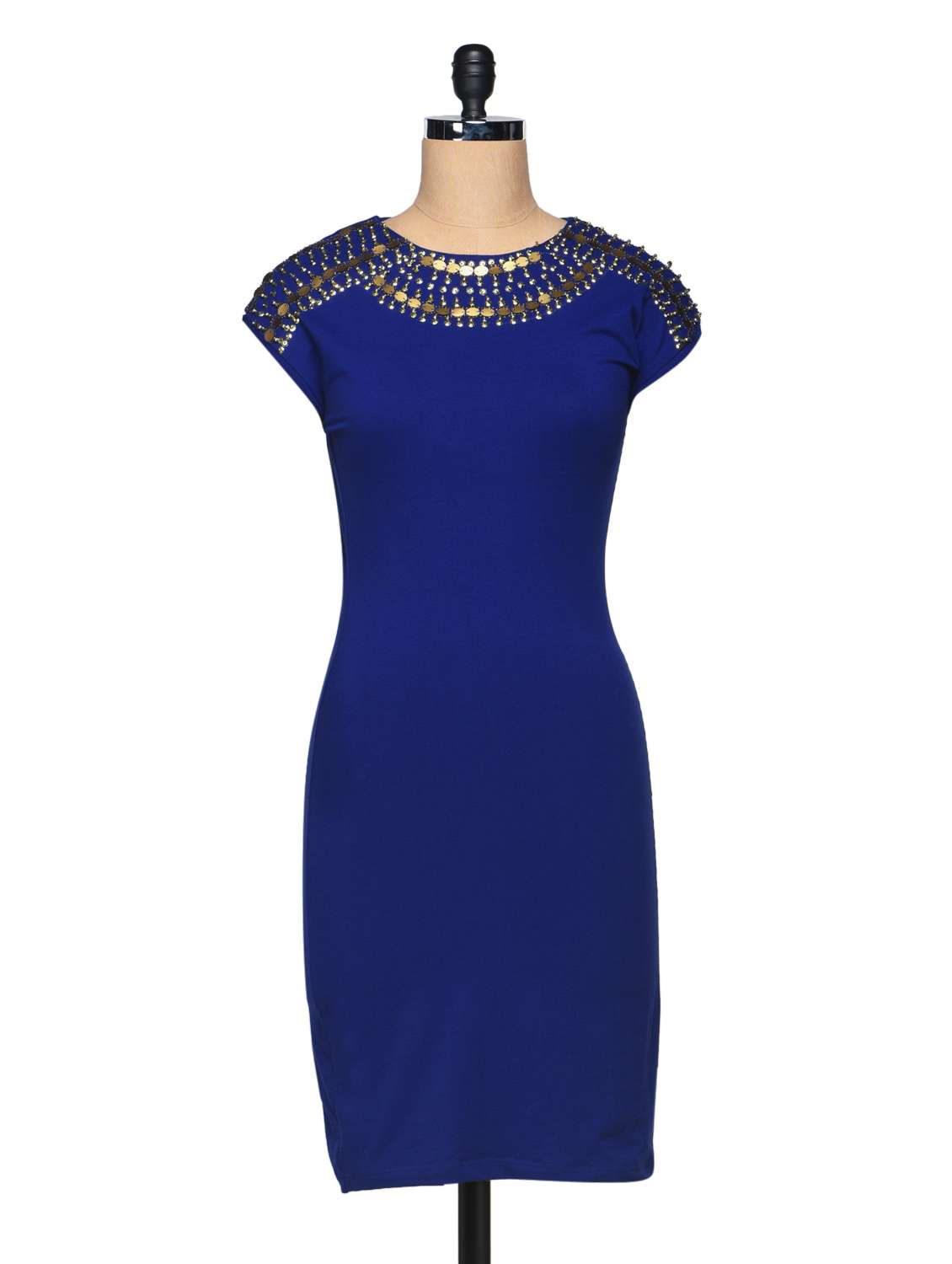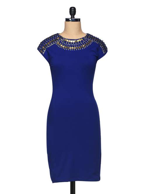 #1 blue embellished knitted cotton bodycon dress & similar products...