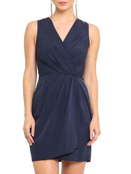 #1 solid navy blue draped dress & similar products...