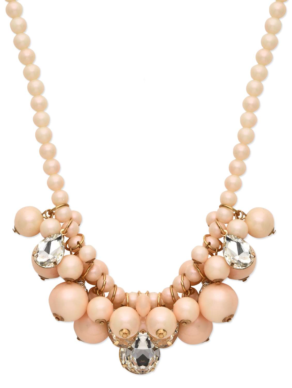 #2 peach pearls and crystal embellished drop necklace & similar products...