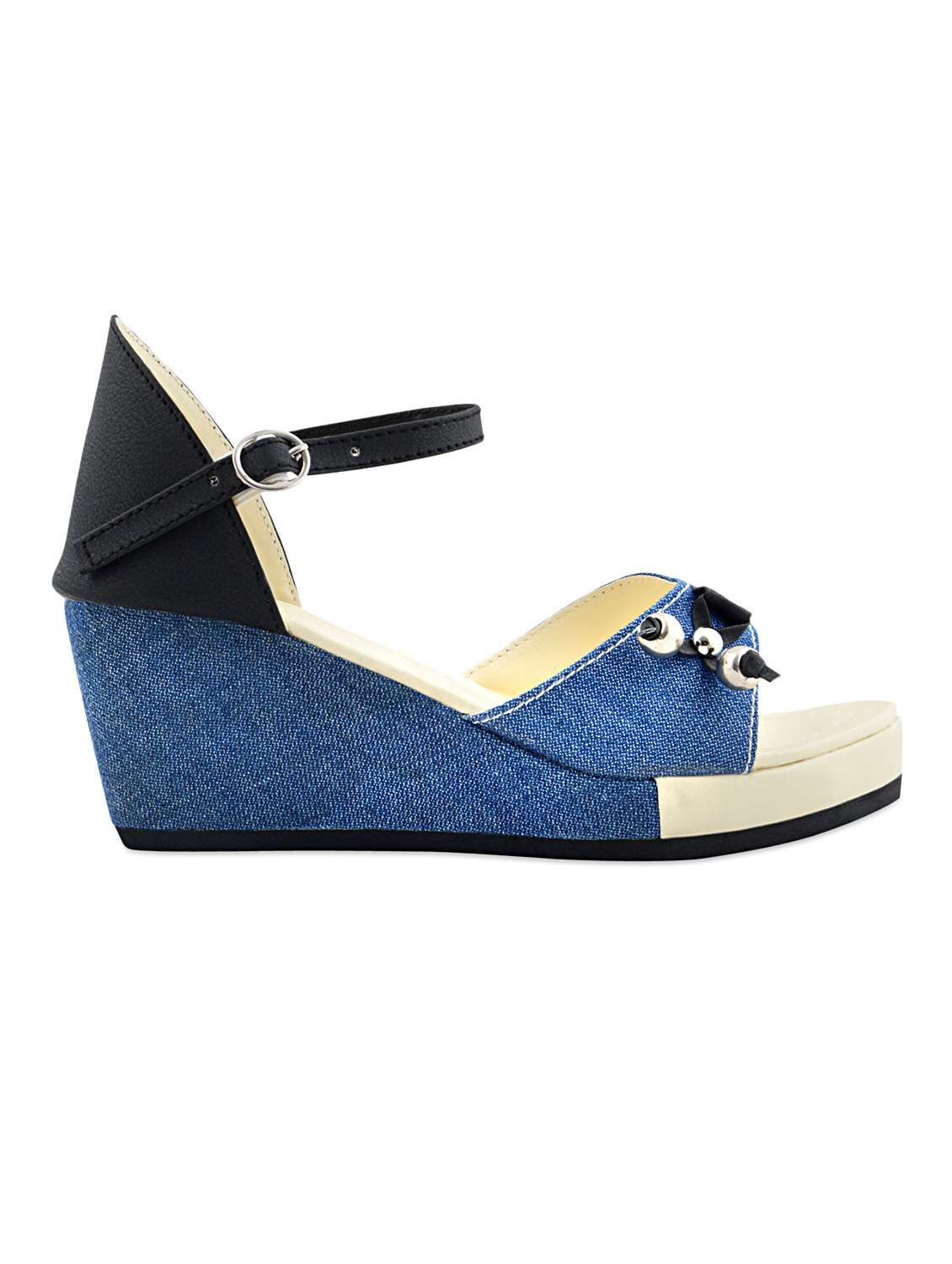 #2 Leatherette Blue Embellished Open Toe Wedges & similar products...