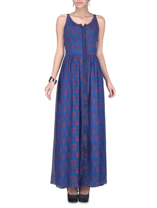#1 sleeveless blue printed maxi dress & similar products...