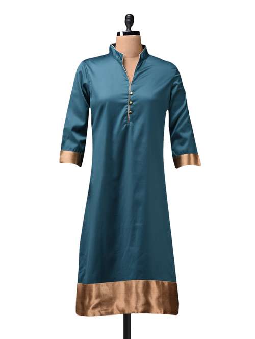 #1 golden border mandarin collar polygeorgette kurti & similar products...