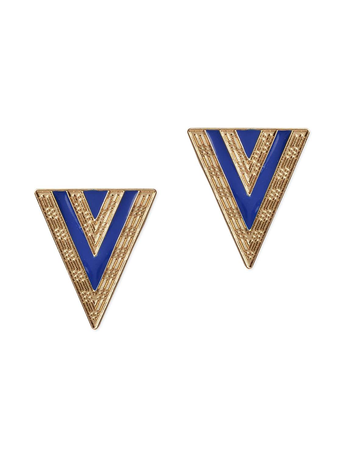 #2 blue and golden triangle stud metal alloy earrings & similar products...