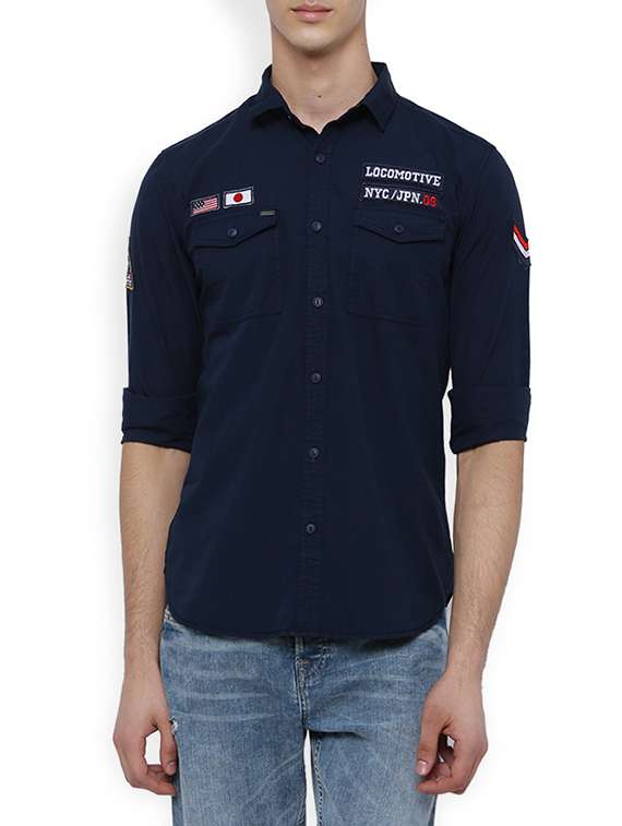 #2 navy blue cotton casual shirt & similar products...