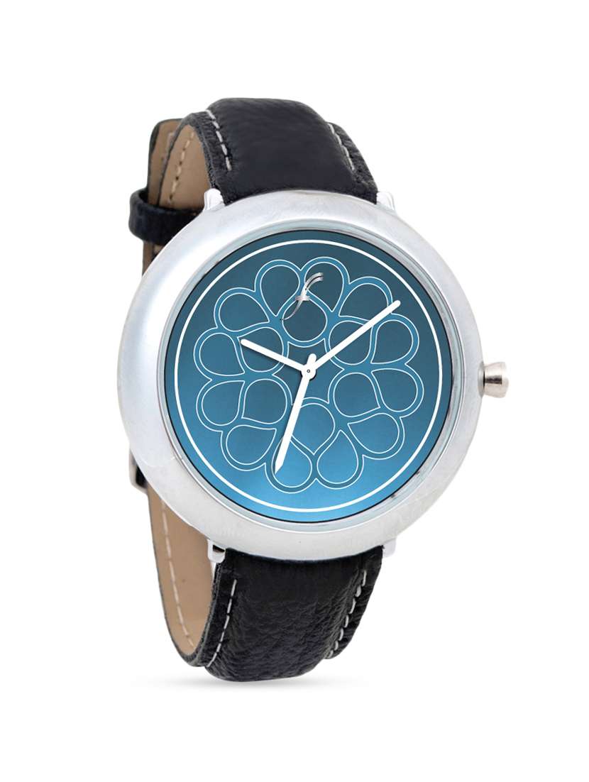 #4 black leather wrist watch with printed dial & similar products...