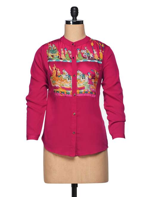 #1 red poly crepe shirt with printed yoke & similar products...