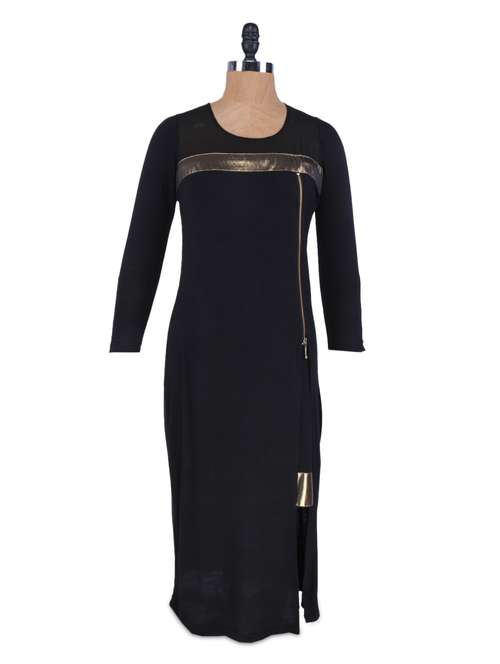 #1 black zip detailed side slit viscose dress & similar products...
