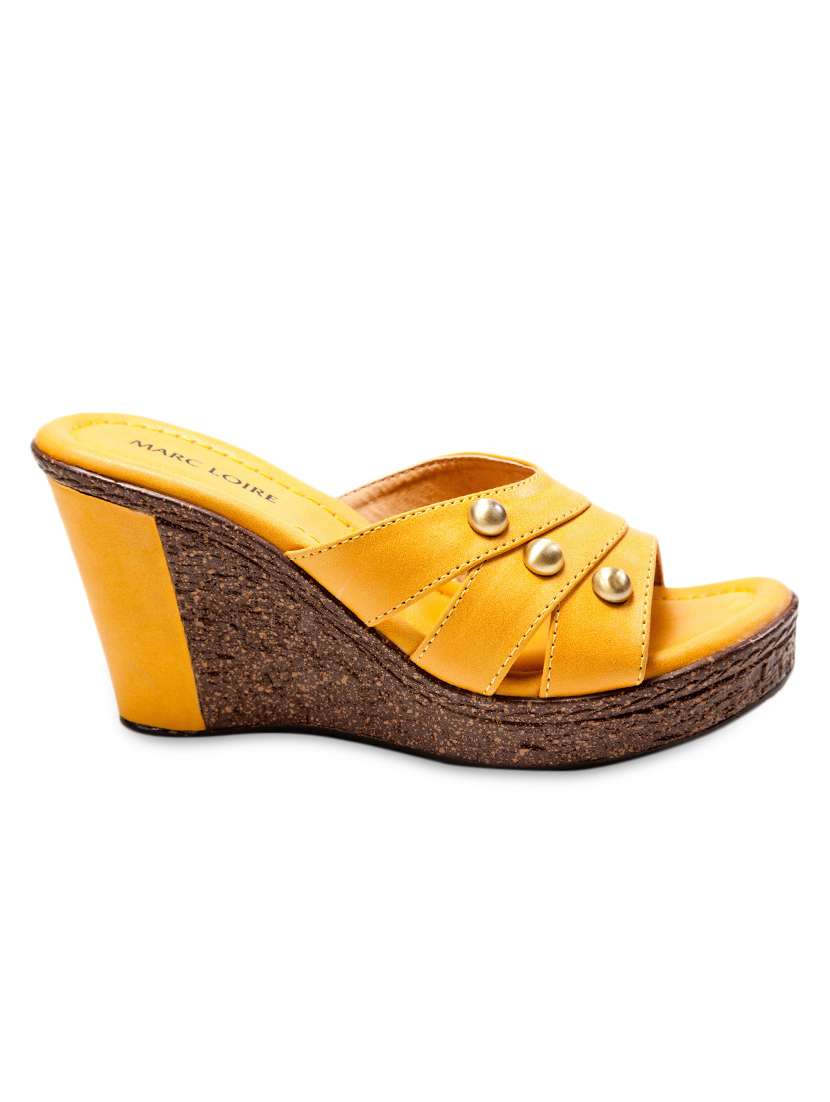 #4 studded mustard yellow open-toe wedge slip-ons & similar products...
