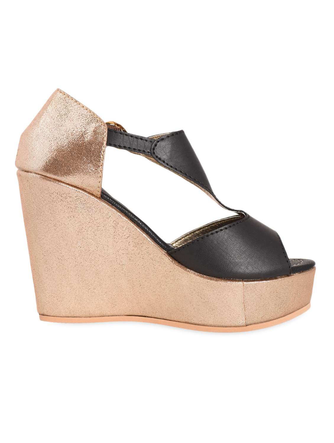 #4 gold and black leatherette wedge sandals & similar products...