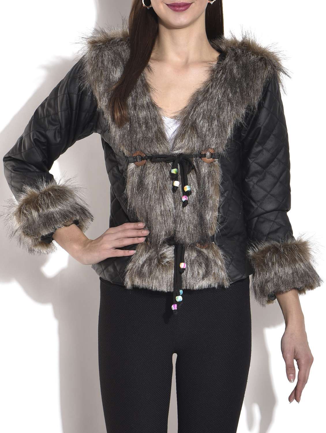 #2 Black faux leather jacket with fur details & similar products...