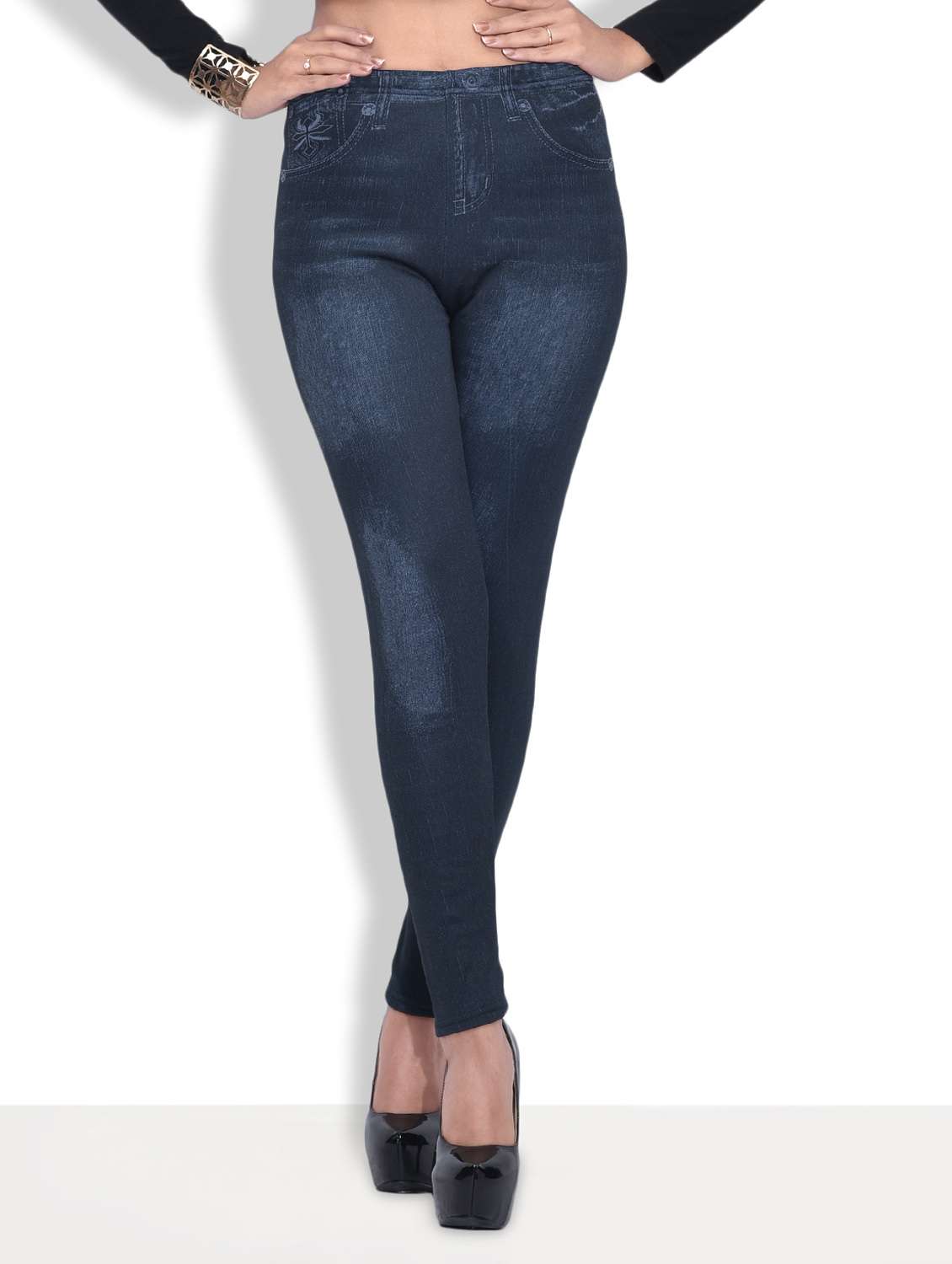 #1 navy blue stone washed woolen jeggings & similar products...