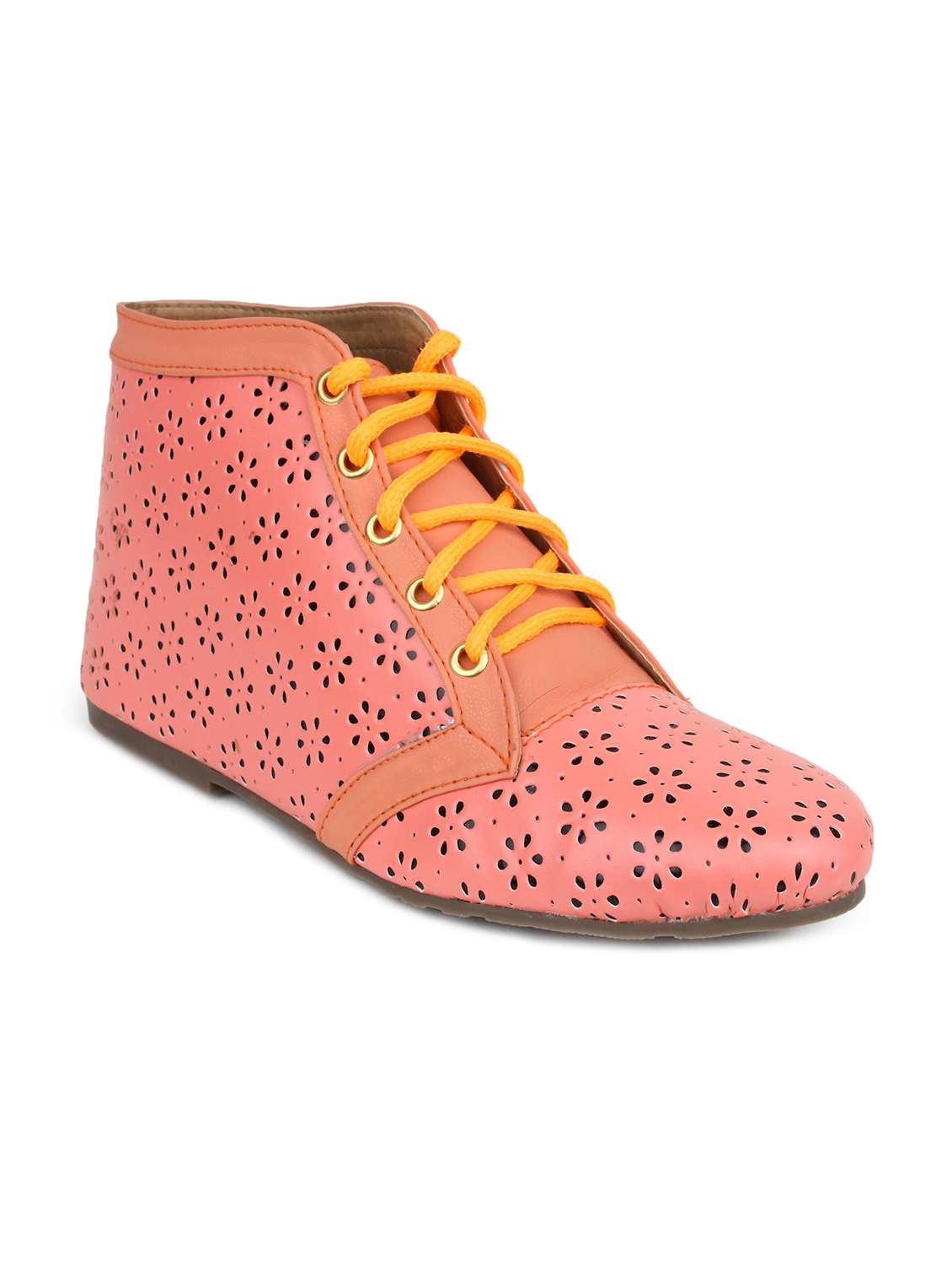 #5 peach floral cut-work detailed boots & similar products...