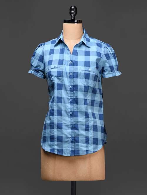 #1 blue check print short sleeves cotton shirt & similar products...