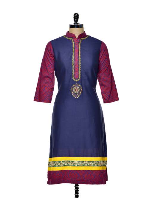 #1 blue embroidered cotton kurta & similar products...