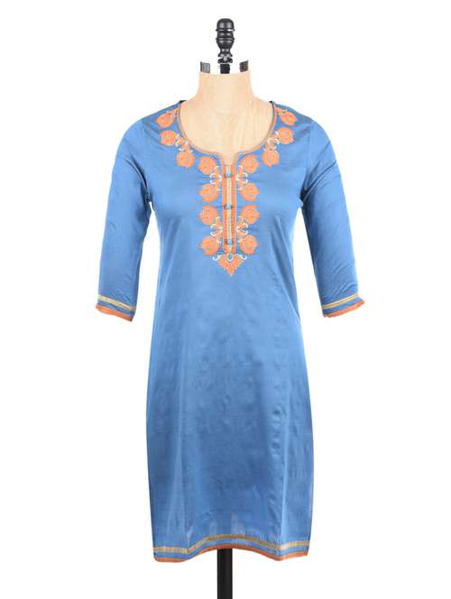 #1 blue embroidery straight kurta & similar products...