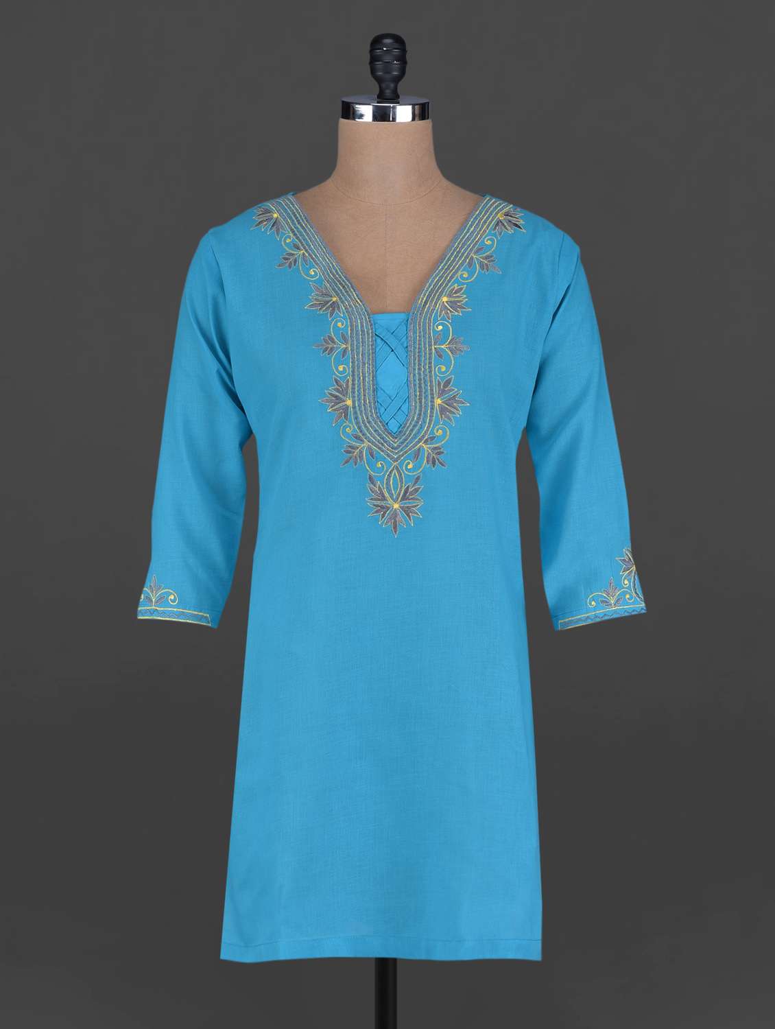 #1 quarter sleeves embroidered neck blue kurti & similar products...