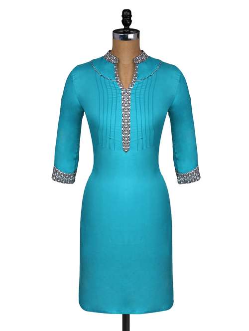 #1 mandarin collar blue pintucked kurta & similar products...