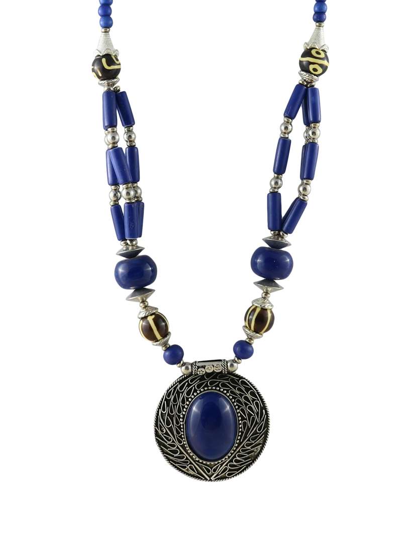 #4 blue metal long necklace & similar products...