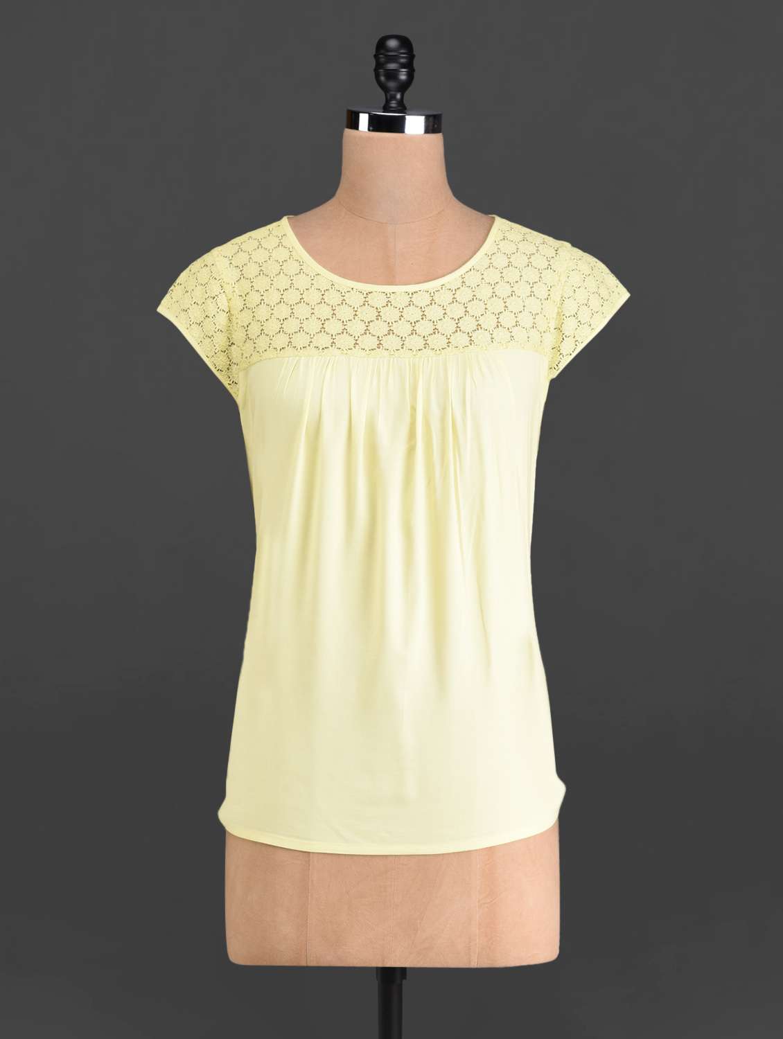 #1 lemon yellow top with cotton lace yoke & similar products...