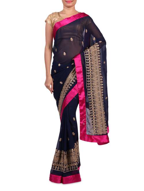 #1 embroidered navy blue faux georgette saree & similar products...