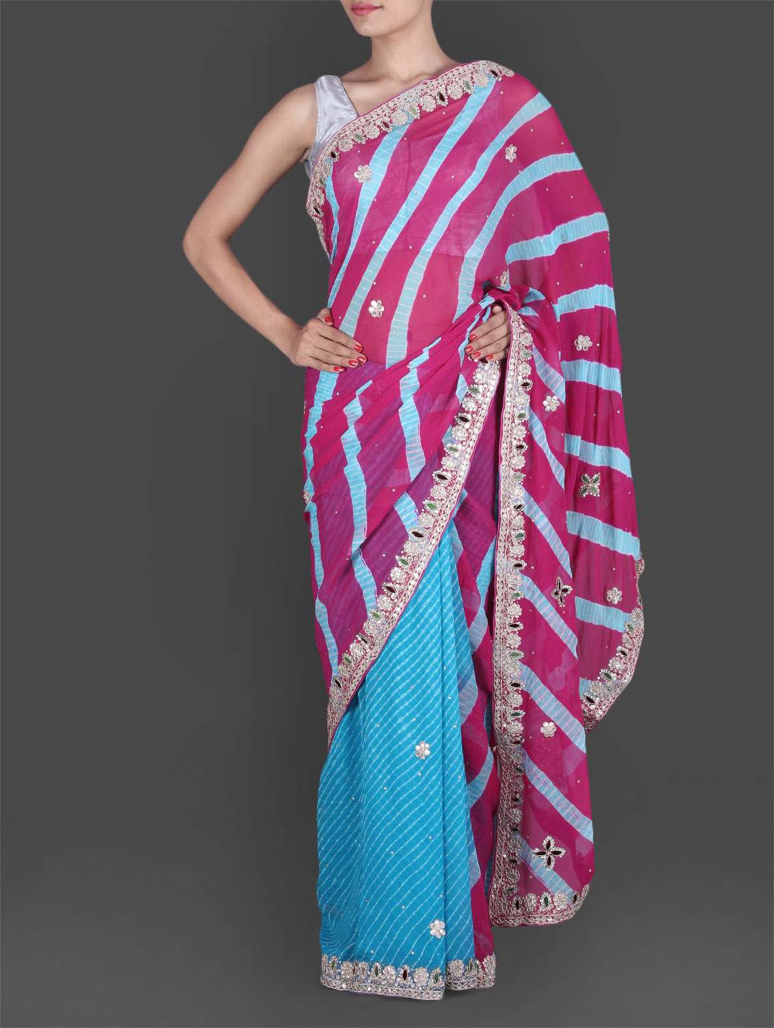 #1 Blue And Pink Leheriya Printed Georgette Saree & similar products...