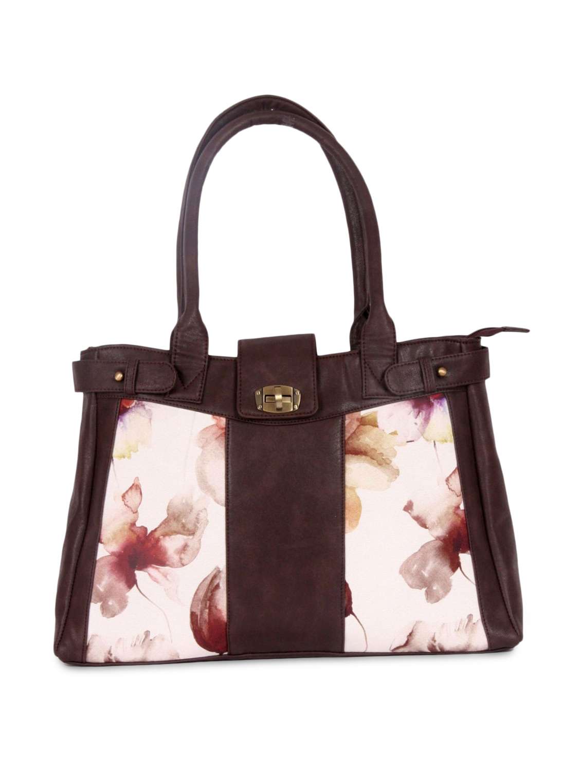 #3 brown vegan leather and cotton watercolor printed bag & similar products...