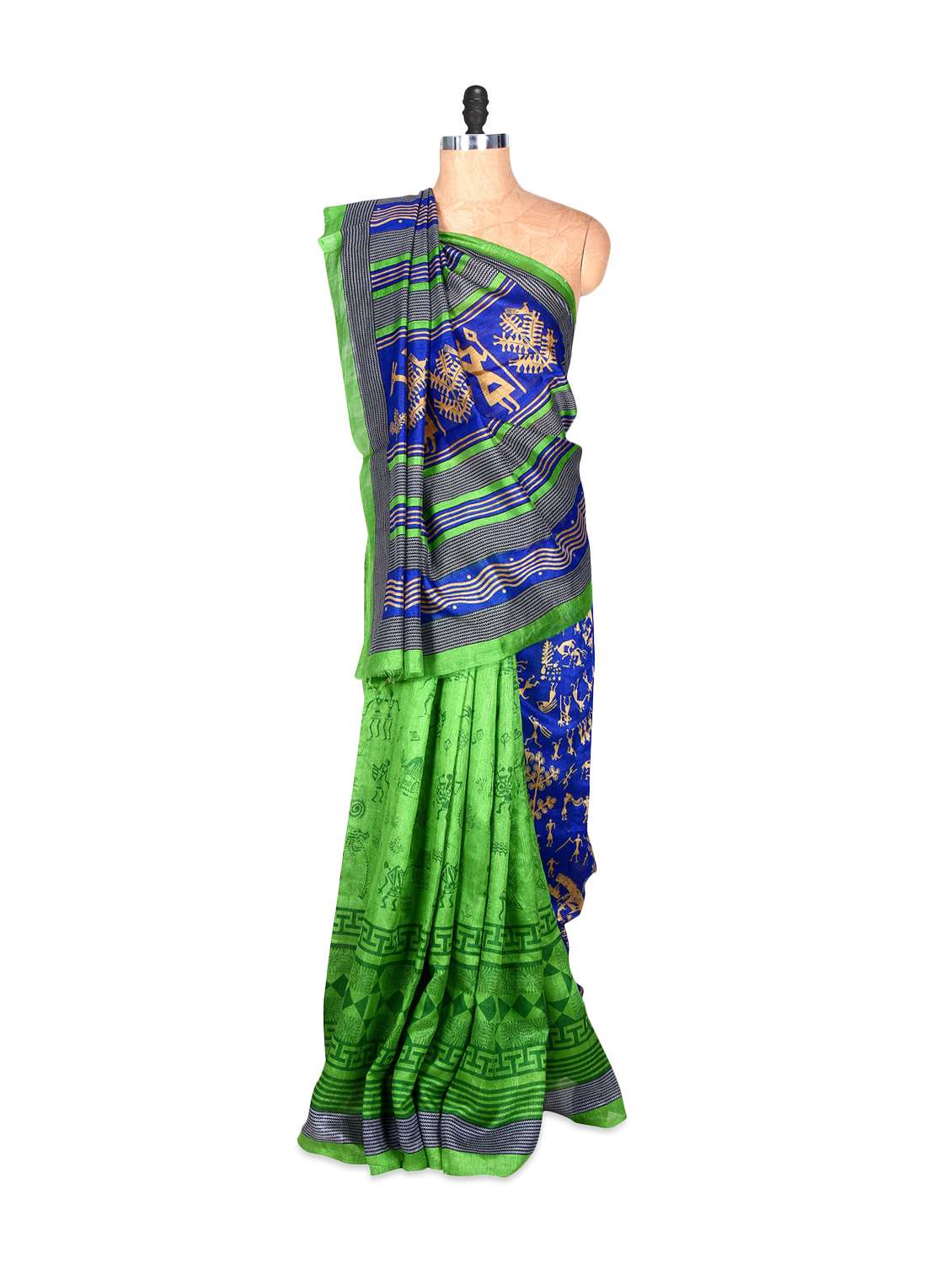 #2 blue and green bhagalpuri art silk printed fabric saree, with matching blouse piece & similar products...