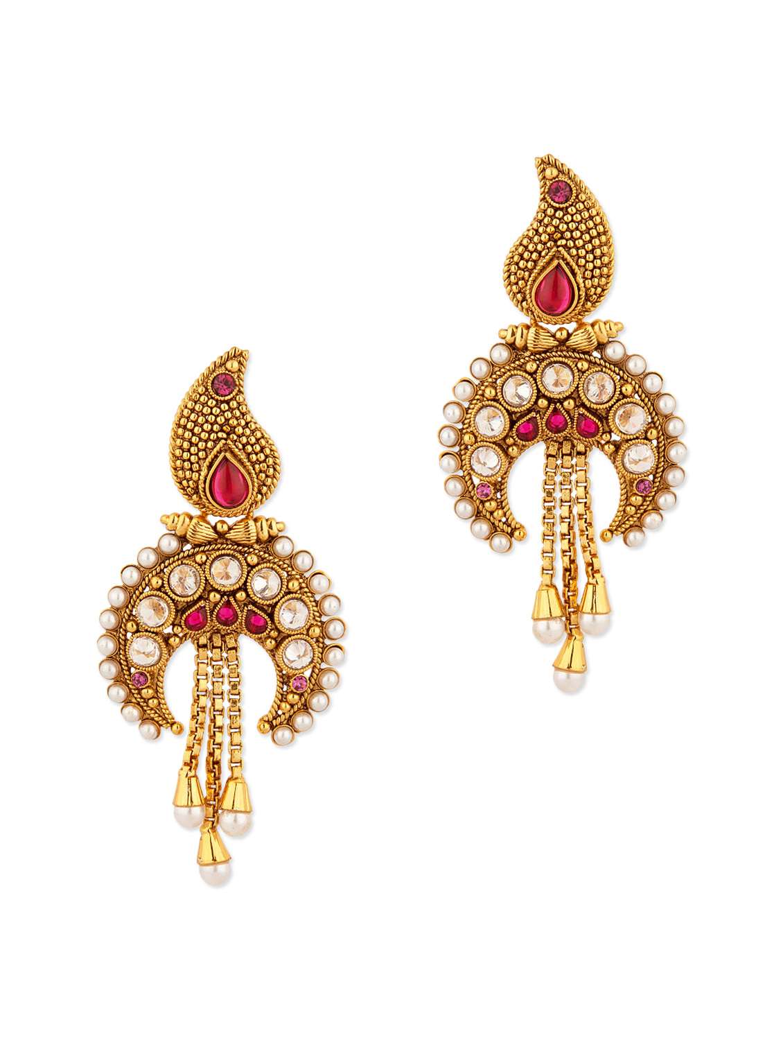 #1 Festive Dangler Earrings With Pink And White Stones & similar products...