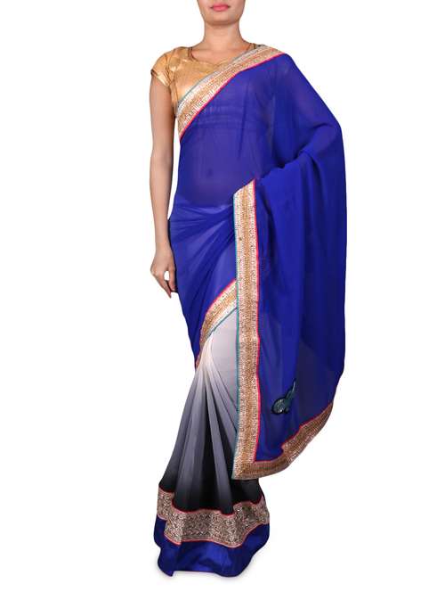 #1 Blue gotta patti worked chiffon saree & similar products...