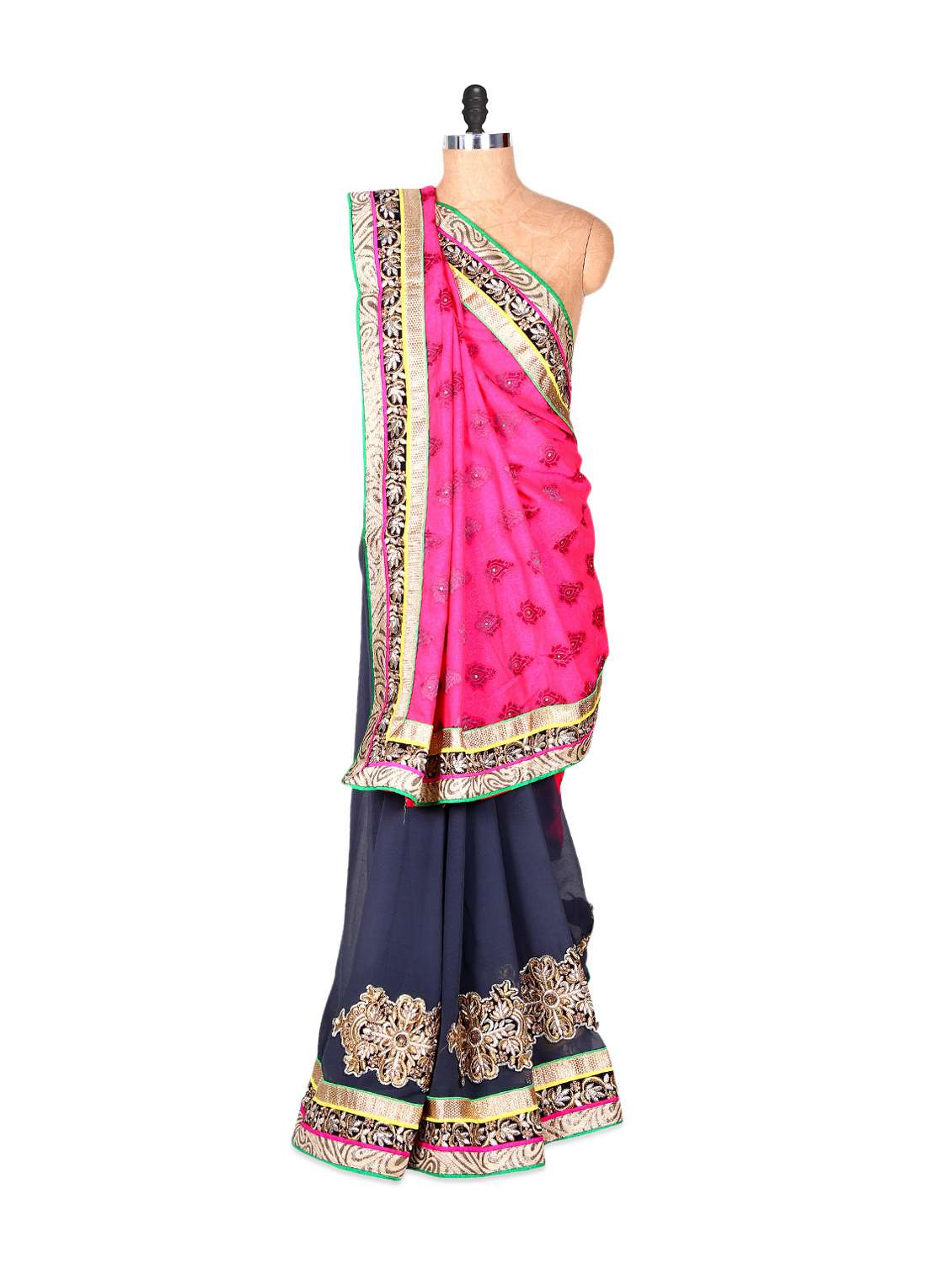 #1 fuchsia and smokey blue georgette saree & similar products...