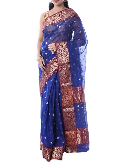 #1 blue chanderi silk woven saree with blouse & इसी तरह के उत्पाद...