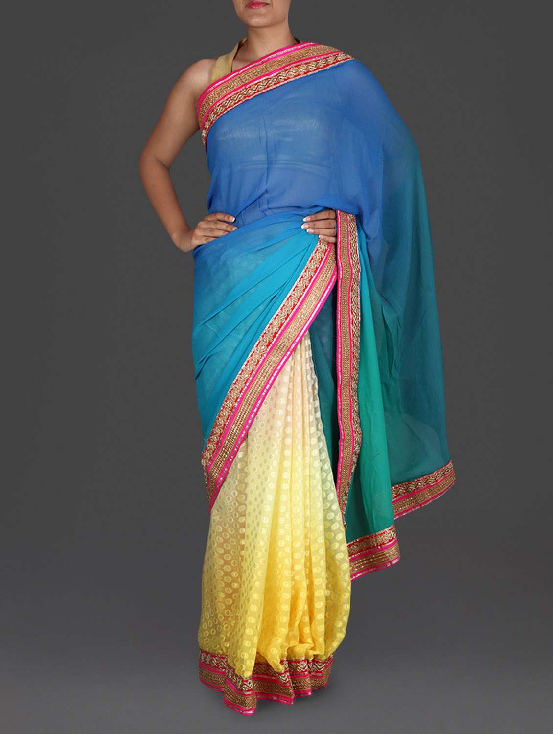 #1 Blue And Yellow Georgette Saree & इसी तरह के उत्पाद...