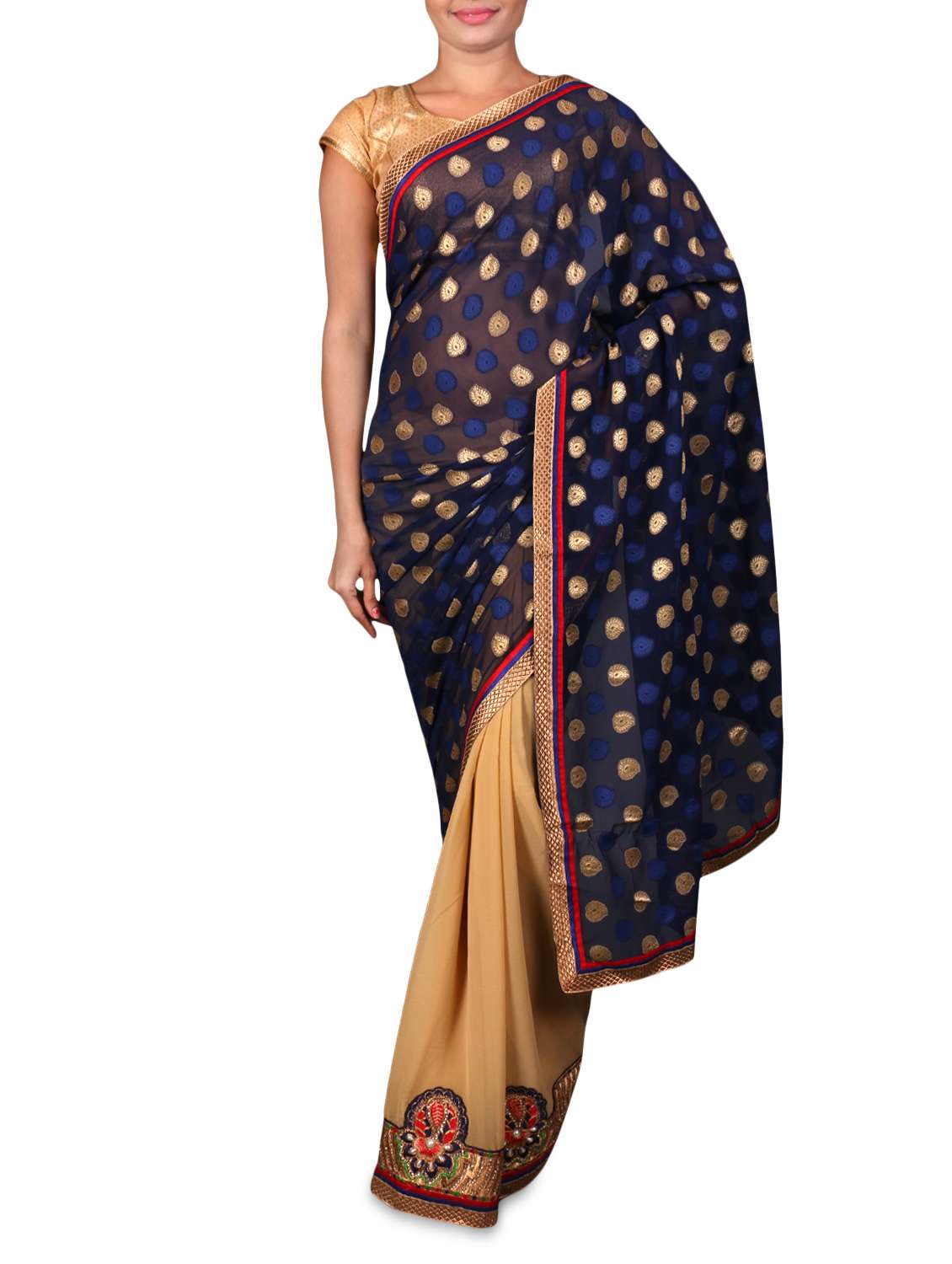 #1 Blue embroidered chiffon saree & similar products...