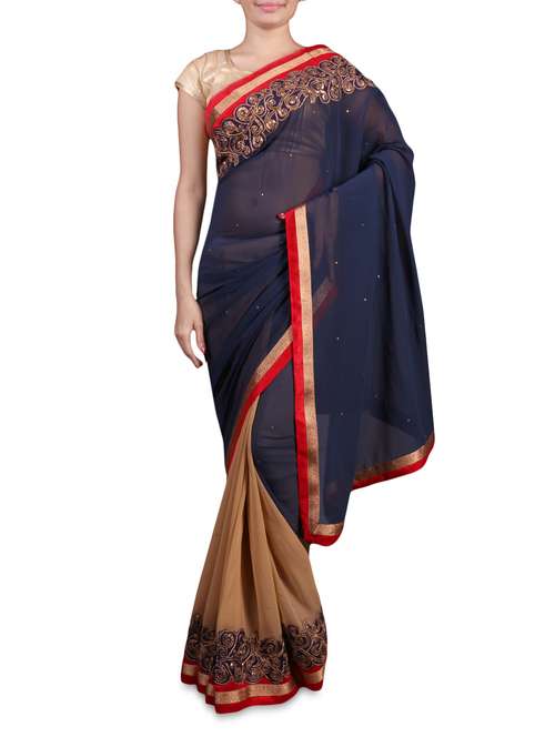 #1 Navy and beige embroidered georgette sari & similar products...